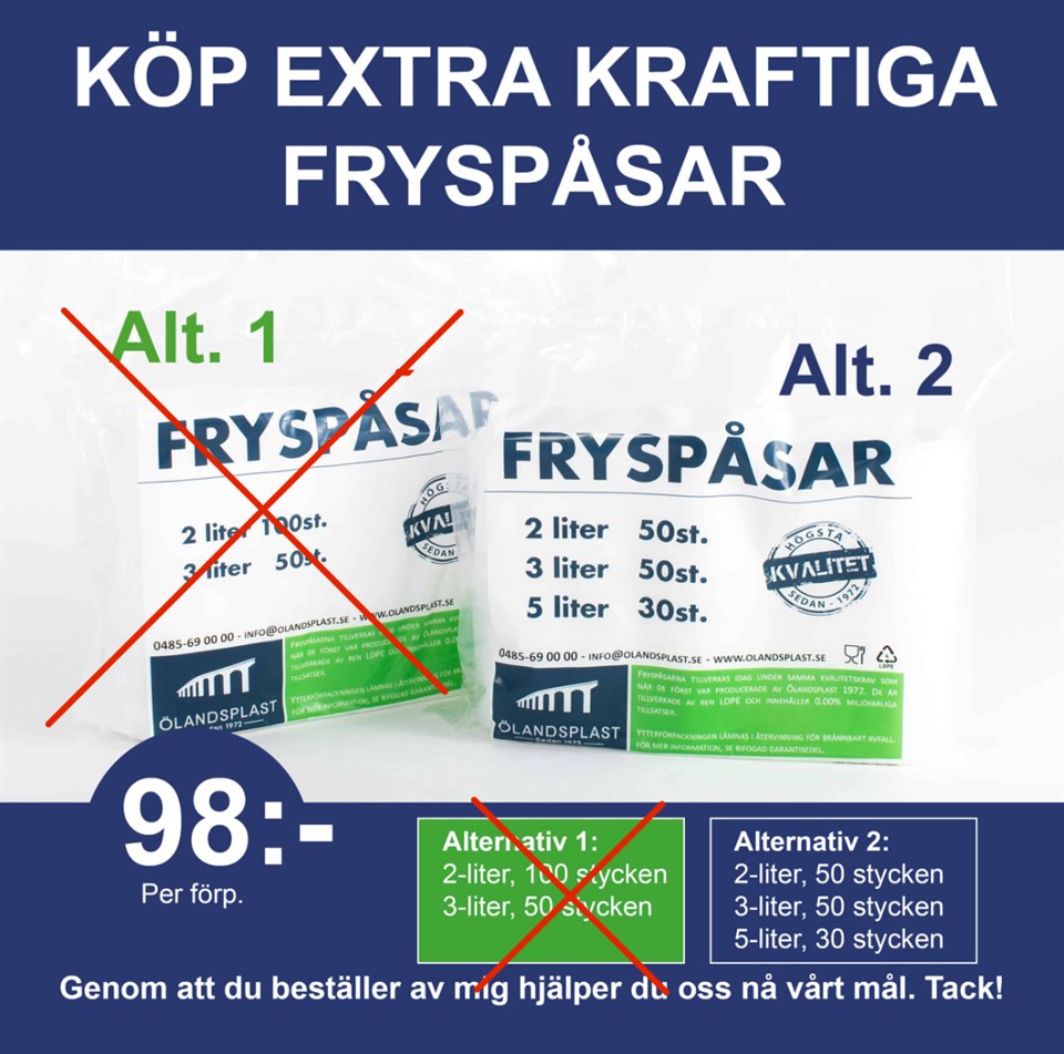 Påsarna kostar 98 kr per förpackning. Totalsumman (1764 kr om man sålt 18 förpackningar) för barnets försäljning swishas senast den 21 september till lagkassan på 1230543371. Märk betalningen med ”Plastpåsar + barnets namn”.