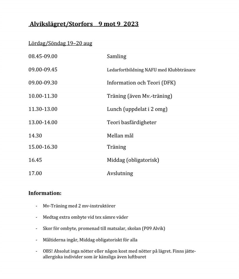 Vi samlas 7.45 på Sinavallen för gemensam avfärd. De som åker dagen innan meddelar detta genom att kommentera nedan. De som kör bil meddelar detta på samma sätt. Om det är någon som inte har skjuts så skriver även ni detta så vi säkerställer att alla tar sig dit. Ta med lunch i form av pastasallad eller liknande att äta mellan matcherna. Viktigt att ladda kolhydrater och protein för att orka! Även vätska Ta med ombyte/extra dockar och underkläder så ni kan byta om mellan matcherna. Vi äter gemensam middag efter matcherna innan hemfärd. Vid frågor kontakta Claes eller Conny F08/09 16 aug 2023 10kommentarer