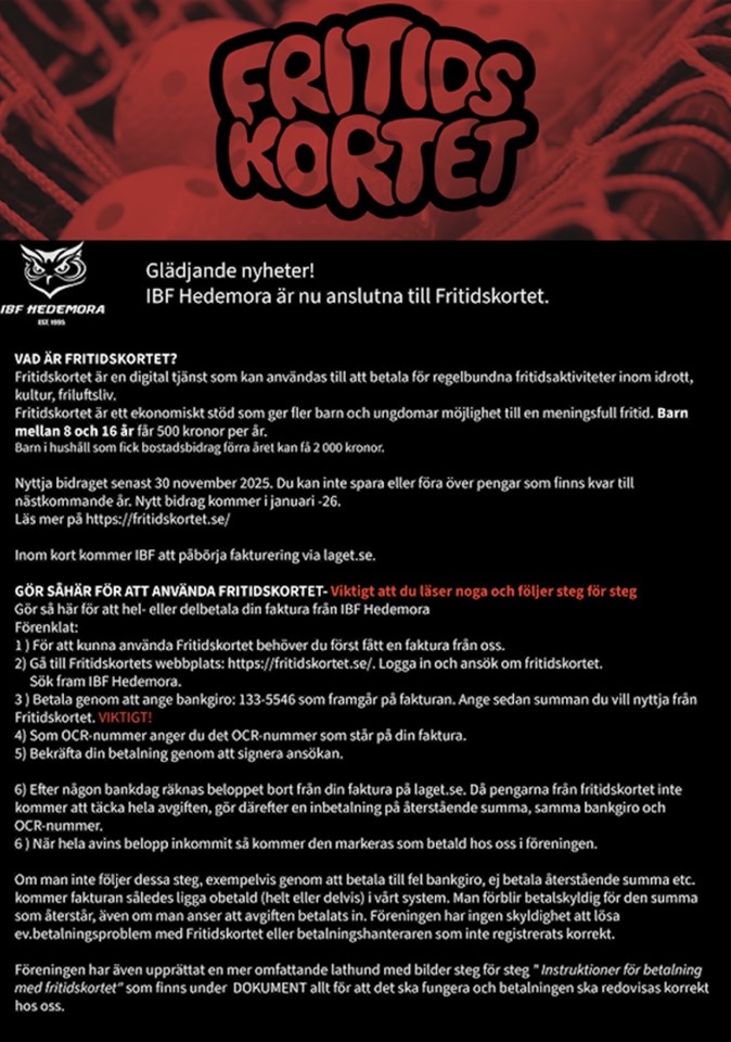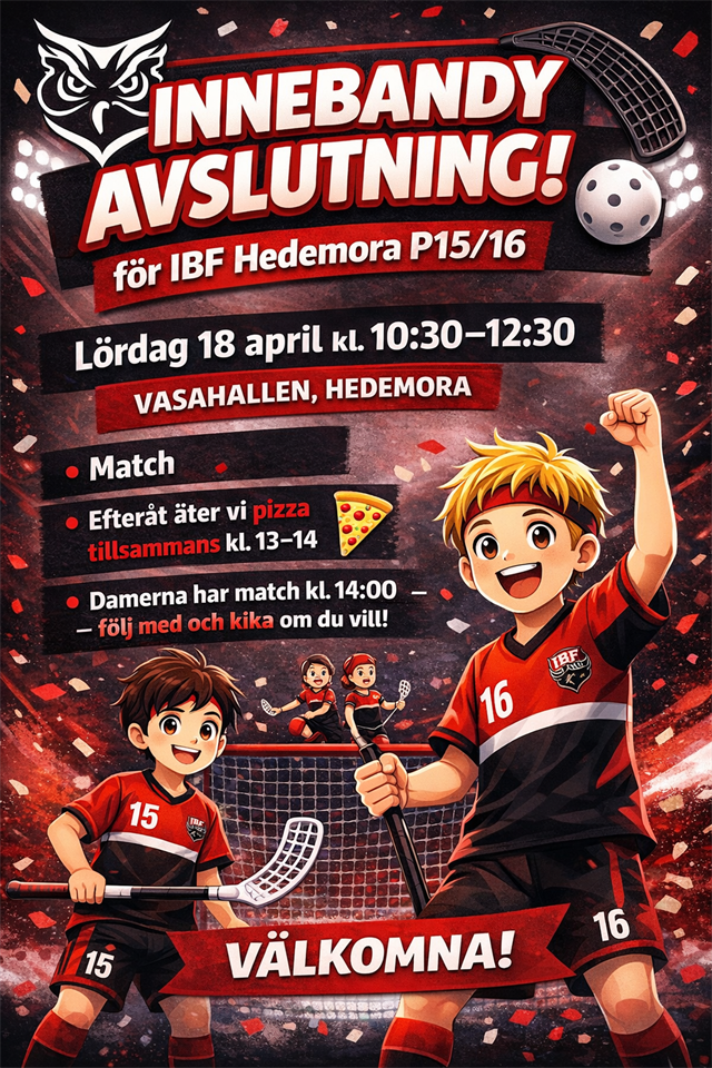 Klicka på bekräftelselänken i det mejl vi skickat dig för att börja ta emot uppdateringar från IBF Hedemora P 15/16.