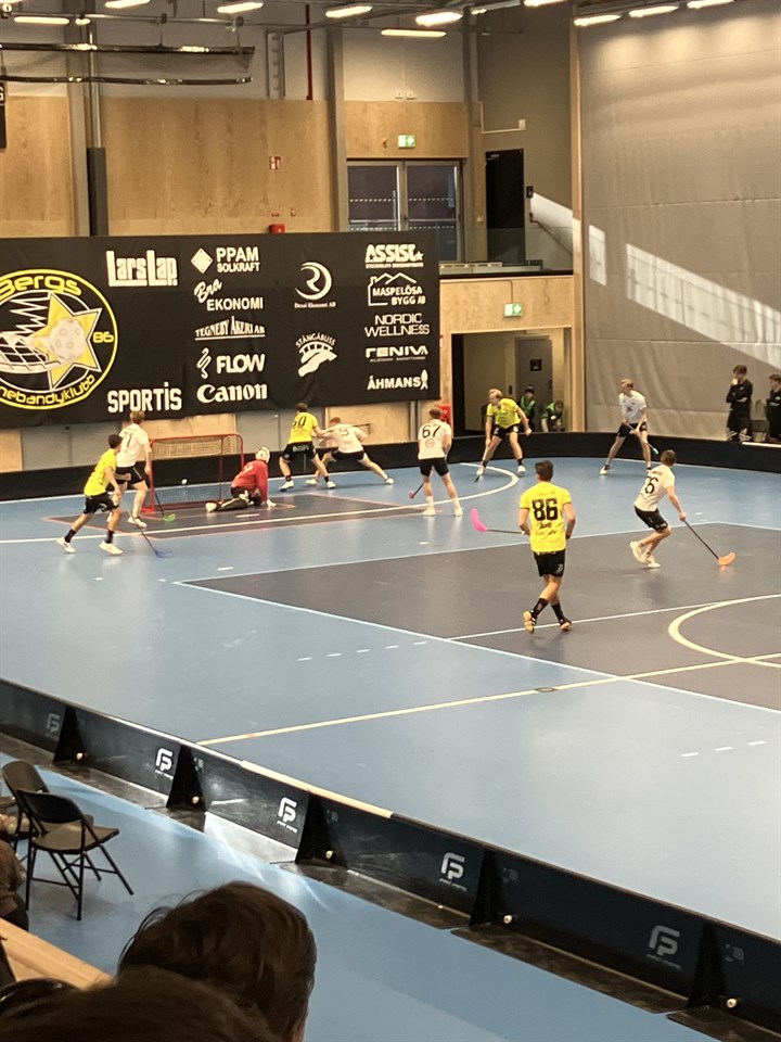 Allsvenskt kval Bergs IK - IBF Örebro Då var äntligen dagen här som man tidigt kunde konstatera på säsongen, att vi skulle nå ett kval mot högre division. Inför matchen fick vi bra signaler från laget att det var taggat till tänderna på spelare och ledare, men vi vet också att Berg har dödat våra kvaldrömmar två säsonger i rad så absolut inget togs för givet på nått håll inför matchen. En hyfsat välfylld läktare med en egen Örebrosektion och många Örebro-trogna supportrar, vi var garanterat mellan 50-100 Örebroare idag. Kul och se uppslutningen för laget. Period 1 Första perioden är jämn där Berg håller i takten spelmässigt och de tar också ledningen två gånger. Deras mål ser i princip lika dana ut, vi anfaller med många och bjuder på en omställning där de kommer tre mot två respektive tre mot en och känslan är att de sätter sina två bra målchanser de har i första perioden. Periodens läckerhet står dock Simon Garman för när han väggspelar sig fram till slottet och får en fin passning av Jacob Embretzen och är klinisk i avslutet som betyder 2-2 efter 18.33. Period 2 Firma Marcus Hjelm/Embretzen hade en bra dag på jobbet idag. 1.59 in på andra akten hade de fixat varsitt mål med assist av varandra. Rivstart på andra perioden med andra ord. Och mer skulle det bli. Jag skulle vilja säga att de första tio minuterna av andra har vi nästintill totalt momentum och Berg känns tagna av inledningen. Garman/Saverstam/Hjelm/Embretzen/Ekengren-femman har total kontroll på händelserna mer eller mindre varje byte oavsett vem Berg satte på banan. Våra andra lirare hängde bara på av farten och gjorde ett grymt jobb de med! - Med hela den femman på planen så är det bara att njuta av att så många bra spelare kan spela tillsammans. Idag behövde dom kliva fram och vara det loket som vi behövt i målproduktionen och det gjordes med bravur, säger tränare Henrik Gustavsson. Perioden slutar i ett målkalas med tre för hemmalaget och fem för bortagänget. Periodens delikatess kom från Wille Krantz och Hampus Håkansson där den sistnämnde visar prov på härlig spelförståelse och känsla efter att Wille lagt en passning/skott i midjehöjd och Håkansson på hockeymaner styr bollen med skaftet och in i mål. Mycket läckert. - Han har nog iallafall en spelförståelse som få andra hänger med i, inklusive mig själv. När han som idag är på spelhumör så är det en ynnest att få coacha en sån spelare som Håkan när han dessutom tar stort ansvar i defensiven och ger allt i alla situationer. En spelare som vi verkligen behöver med sin spelförståelse och teknik, kommenterar coach Gustavsson tremålsskytten Håkansson. Period 3 Två måls ledning är inget, det vet vi sen länge. Vi hade händelserna under kontroll men under båda seriens matcher mot Berg har de hämtat upp i slutperioden så man kan verkligen inte slappna av. Men det var en sån där match då det aldrig riktigt blev spännande. Grabbarna gör kanske en av säsongens bästa matcher. Trots stundtals lite ruffiga situationer står vi upp bra i hela matchen. - Tycker att Klingberg, Foppa och Linkan visar en otrolig pondus i närkampsspelet och ger oss en annan dimension i vårat spel och kan erbjuda något som våra mest offensiva spelare saknar. Lagmaskinen har börjat mullra igen, säger coach om närkampsspelet. Vid ställningen 6-10 tar Berg ut målvakten men de är verkligen aldrig nära idag även med en man mer på banan. Två mål i tom kasse plus ett till av Krantz med 29 sekunder kvar gör att det slutar med en förkrossande 6-13 seger. Tycker det är en fullständigt rättvis seger och ser gladeligen fram emot matchen i Idrottshuset på onsdag. Visst kan vi fylla läktaren då? Matchens lirare: Marcus Hjelm. - Hjelms energi i spelet höjer sig definitivt när det vankas avgöranden och slutspel. I kombination med resten av grabbarna i den femman så får vi en otrolig spets i våran redan breda trupp, är coachs kommentar om Marcus Hjelms insats idag. Allsvenskt kval 1:3 Bergs IK - IBF Örebro 6-13 (2-2, 3-5, 1-6)