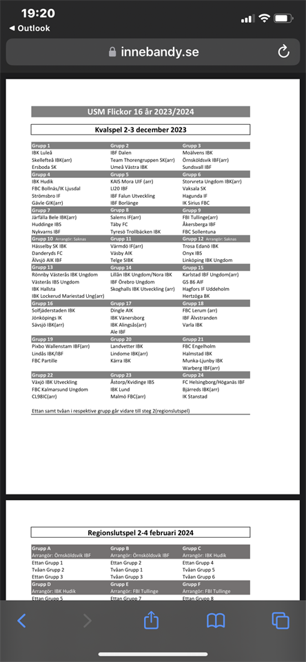 Hej, Lägg in helgen 2-3 dec 2023 💯🔴 Jag har inte så mycket info, förutom att jag anmält oss. Vi har anmält oss till USM F16 säsong 2023/24. Se nedan med info ifrån Innebandy förbundet. På vår hemsida hittar ni all information om tävlingen: https://innebandy.se/tavling/tavlingar/usm-16-ar Mvh Andreas B IBF Örebro DJ 27 jun 2023 2kommentarer