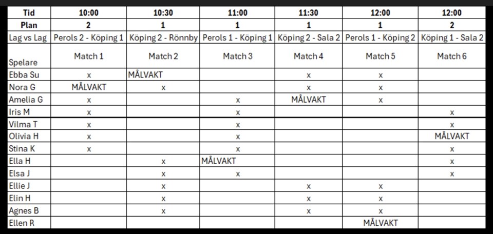 Tyvärr fler bortfall, krya på er allihoppa. Ny uppställning, Sala matcherna kommer spelas 3 mot 3. De andra 4 mot 4.