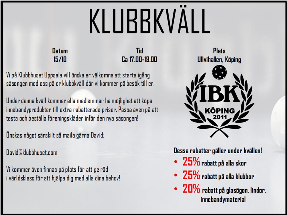 • Klubbkväll med klubbhuset på Onsdag 15/10