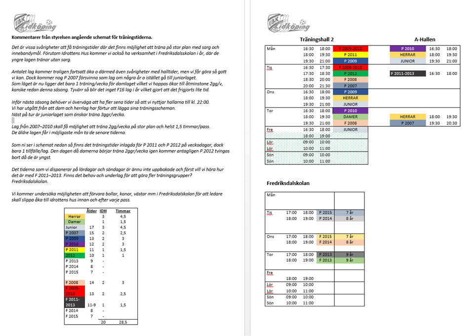 På bifogad bild där ni ser hur styrelsen tänkt kring träningstider. Läs igenom och ta med er kommentarer och funderingar till mötet imorgon. Frågor innan mötet hänvisas till Mikael Hasselström, 0706145292. Dokumentet finns även i PDF format sparat här på ledarsidan under MER - DOKUMENT - TRÄNINGSTIDER 2022-23 Ledarsida 23 aug 2022 0kommentarer