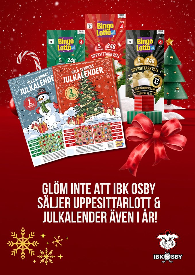 Följ oss för uppdateringarGlöm inte att IBK Osby säljer uppesittarlott & julkalender till Bingolotto även i år! Håll utkik!