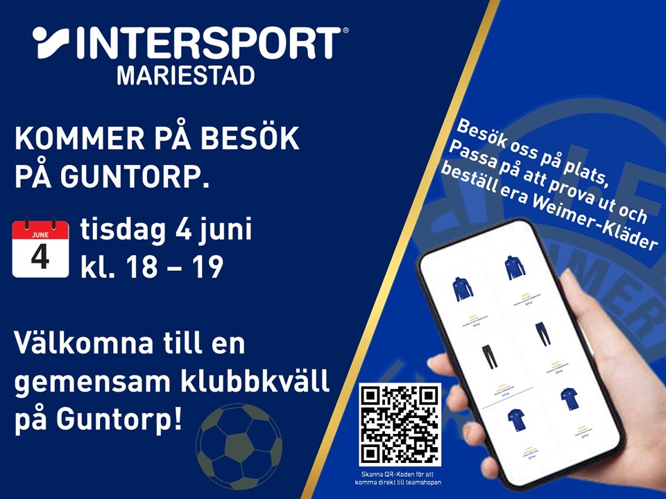 På tisdag har vi Intersport på plats på Guntorpsvallen, här kommer en hälsning från Johan: Vi välkomnar alla medlemmar i IF Weimer Lyrestad på klubbkväll nu på tisdag 4 juni vid Guntorpsvallen. Intersport Mariestad kommer att finnas på plats för möjlighet att prova ut och beställa era egna klubbkläder från Weimers sortiment. Så passa på! Ni kan redan nu gå in och kika på hela sortimentet och även lägga er beställning i teamshopen på https://team.intersport.se/if-weimer-lyrestad. Varmt välkomna! Med Vänliga Hälsningar Johan Granath Teamsäljare (Mer info om hur föreningen subventionerar delar av träningsoveralltröja mm finns att läsa under dokument på föreningens hemsida) På torsdag är alla träningar, förutom för p12-14 år, inställda. Vi uppmuntrar er istället att delta vid nationaldagsfirandet vid hamnplanen. Sedan många år tillbaka brukar spelare gå weimerklädda bakom blåsorkester när det tågas genom Lyrstas gator. Efteråt bjuds alla barn på fika. Tåget startar 16.00, samling strax innan. Om ni inte har Weimerkläder hemma så kan ledare dela ut det på tisdagens träning. PF 11-12 år 30 maj 2024 0kommentarer