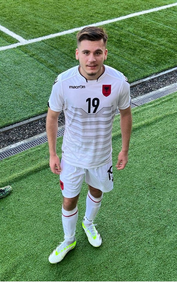 En av våra unga spelare som under 2023 debuterade i vårt div 2-lag, nämligen Kevin Sqapi deltar för närvarande i ett läger för Albaniens P18- landslaglag. Lägret pågår några dagar i Albaniens huvudstad Tirana. På bilden poserar Kevin i den albanska landslagsdressen stående på det Albanska fotbollsförbundets konstgräsplan som ligger i anslutning till förbundets kanslianläggning.