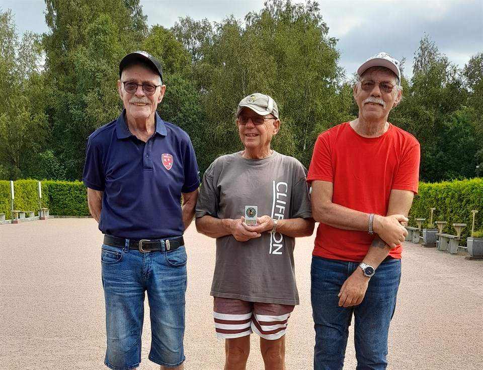 Årets KM i singel samlade 14 deltagare. Vädret var bättre än lovat - ingen nederbörd. Efter fem omgångar med många jämna matcher kunde ärets klubbmästare krönas. Vinnare med fem vinster blev Gunnar Garpö, tvåa med fyra vinster blev Klas Petersson och trea med tre vinster blev Loe Qvist. IF Boule 14 18 aug 2023 1kommentar