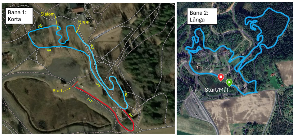 De yngre grupperna (Grön, rosa) kommer köra en varvbana (Bana 1) vid stugan i ca 15-20 min.