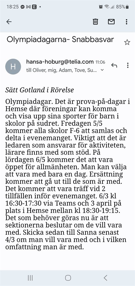 Behöver ha svar från er nu snarast helst redan i morgon om ni tror att ni har möjlighet att vara med eller ej, så att jag vet att ni tagit del av informationen.