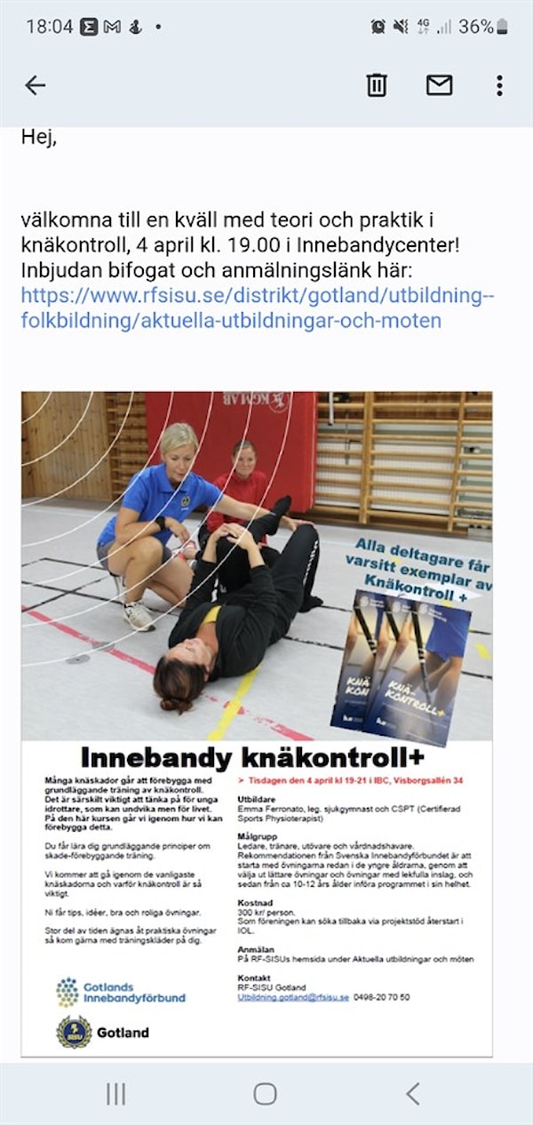 Välkomna till en kväll med teori och praktik i knäkontroll, 4 april kl. 19.00 i Innebandycenter!