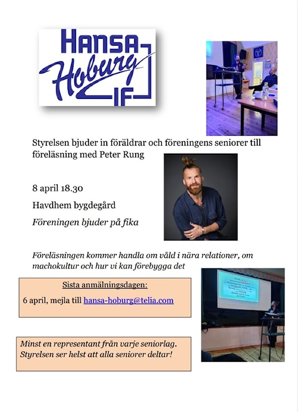 Styrelsen bjuder in föräldrar och föreningens seniorer till föreläsning med Peter Rung