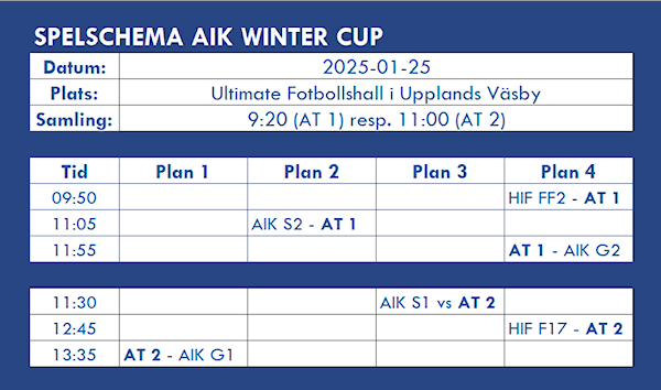 Om det funkar så önskar vi att Ilses spelar i det AT1. Har en fullspäckad dag så det skulle underlätta om vi kan få den tidiga tiden.