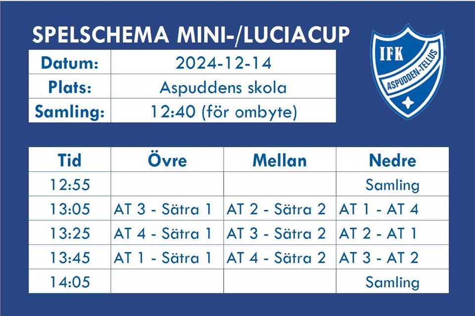 • Spelschema för morgondagens minicup 14/12