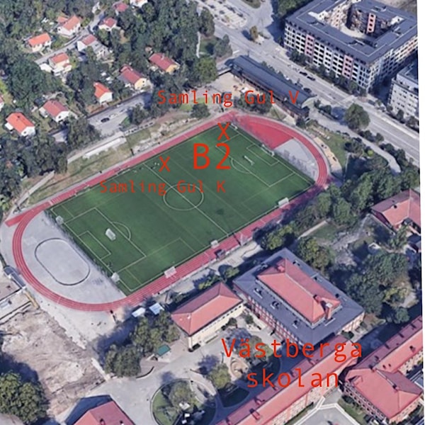 Se bild över Västberga planen för vilken ¼ vi fått tilldelad och var resp grupp kommer samlas.