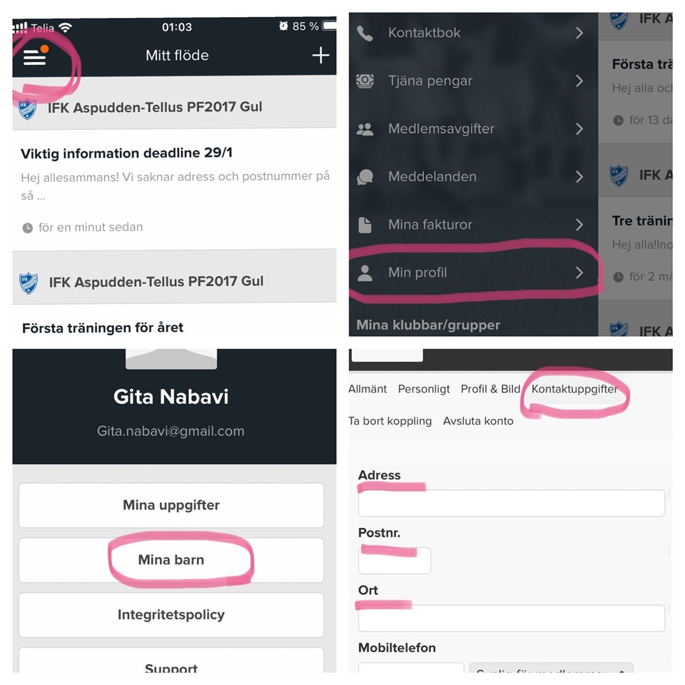 Hej allesammans! Vi saknar adress och postnummer på så gott som alla barn i laget. För att föreningen ska få bidrag för gänget behöver vi alla gå in och uppdatera barnens uppgifter. De finns under er egen profil på laget-sidan. Deadline är på söndag den 29 januari så det är brådskande. Jag hjälper de som behöver på plats på träningen på lördag. Lycka till! Vänligen, Gita P2017 Gul 25 jan 2023 0kommentarer
