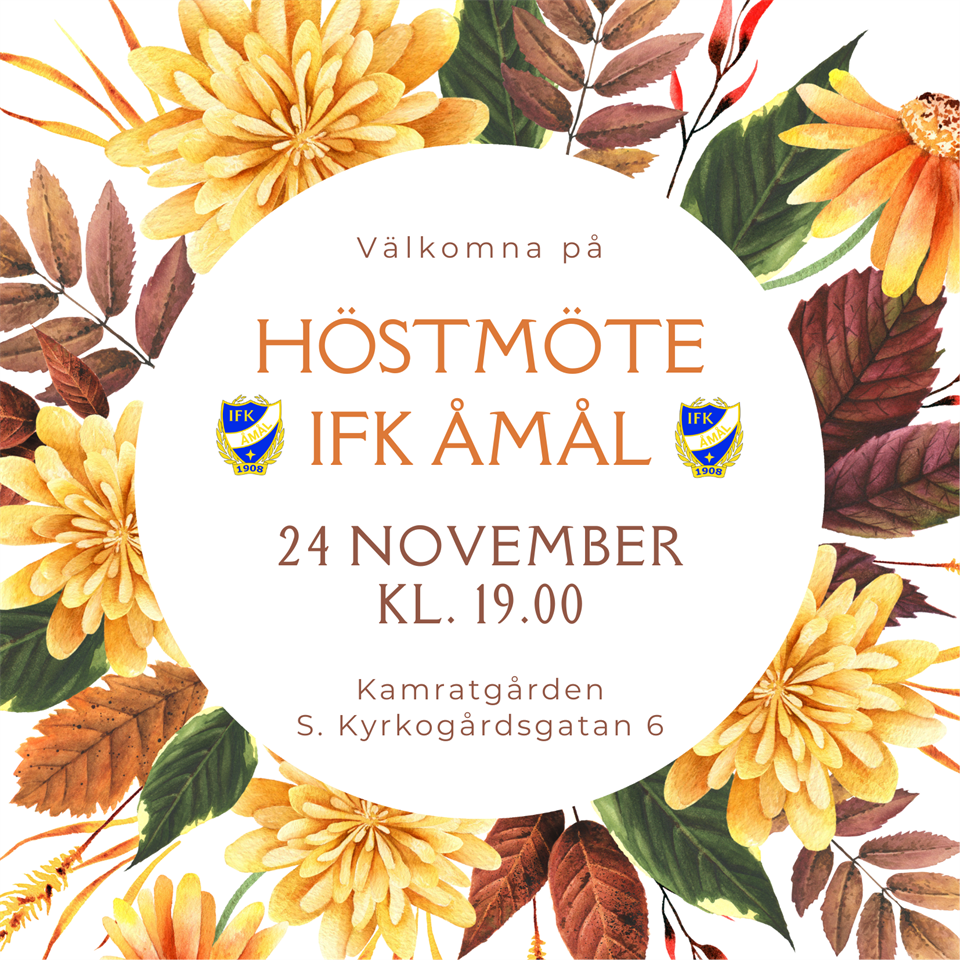 Välkomna till höstmöte! På höstmötet är det val till fotbollssektionen, ekonomiskt utfall samt budget med mera. Måndag 24 november kl. 19.00 är ni välkomna!