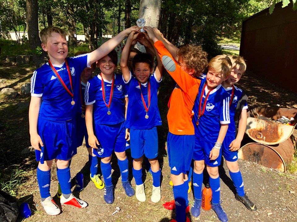 AT P10 Blå fick igår höja en pokal efter att ha spelat 3 kul matcher i 2019 års Kompiscupen. Efter matcher mot BP och Kungsängen där vi inte riktigt kom upp i vår bästa nivå så skärpte vi till pressen i försvarsspelet och koncentrationen i anfallsspelet mot Mariefred. Efter prisutdelningen så väcktes frågan om var vi ska förvara denna och alla kommande pokaler. P2010 Röd 17 jun 2019 1kommentar