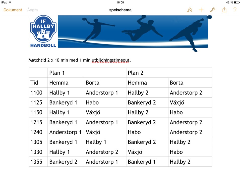 Hej! Nu på lördag är det poolspel i Jönköping mot flera lag. Vi samlas vid Idrottshusets entré kl. 10:30. De första matcherna börjar kl. 11:25 och de sista kl. 13:55. Tjejerna ska ha med sig vattenflaska och inneskor. Det är också bra om man har med sig något enklare att äta mellan matcherna så man orkar hela dagen. För hela matchprogram se bifogad fil. Kan man inte vara med så skicka ett mail eller sms till: jonas.dufva@gmail.com eller 0708134992 Kämpa IFK Bankeryd F05! /Tränarna