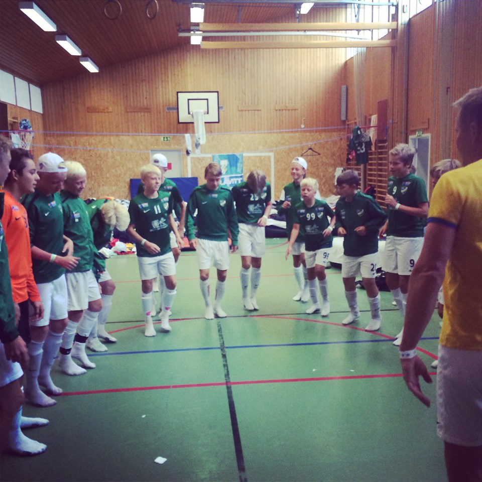 Habo IF - IFK Björkö 0-2 Så var det äntligen dags, avfärd till Dalsland för att försvara vårt guld från förra året. Efter traditions enlig lunch på "La familia" i Uddevalla sladdade vi in på Cup centret i Färgelanda vid 15 tiden. Förmodligen har vårt tidigare deltagade i cupen varit uppskattat eller så var det förra årets vinst som gjorde att vi blev inplacerade i idrottshallen helt för oss själva. Vilket flyt. Hur stort som helst och även ett ledarutrymme för coach A att krypa in i. :) Men glädjen varade någon dryg timma... I idrottshallar finns bollar och fotbollsspelare gillar bollar. Lagom till samlingen för dagens match kommer Carl haltande.. En bollspark blev en väskspark då Carl missade bollen och träffade Hampus välpackade väska. Ett rejält skärsår blev resultatet och efter ett besök av sjukvårdare på plats bokades tid på Dalslands sjukhuset efter vår match. Ingen perfekt start på äventyret direkt och extra tråkigt för Carl givetvis som gör sin första turnering med oss. För motståndet i första matchen stod Habo IF, ett lag vi slog vid två tillfällen förra året. De gick till semifinal då och vi vann med 1-0 den matchen efter mycket om och men... Vid kansliet träffade vi deras ledare som genast förklarade att IFK Björkö står som favoriter till Guldet i år och ni bär ett tungt favoritskap. " Ni har allt att förlora, vi allt att vinna". Trevliga ledare med glimten i ögat. Nu till matchen! Vi startar matchen på ett riktigt bra sätt! Axel tar en grym löpning och väggar sig igenom på vänsterkanten. Fri med målvakten från sin position laddar han vänstersläggan och får bollen på mål, målvakten står dock rätt och räddar. Nästa anfall är det Tobbe som får chansen, inget mål den gången heller men chanserna avlöser varandra. De blåa kommer inte över halva planen första tio och tre mål till oss vore rättvist. När domaren blåser för halvtid står det fortfarande 0-0 men vi känner ingen oro. Ett par minuter in i andra så kommer det förlösande ledningsmålet. Det är klapp klapp via mittfältet och ett väggspel gör Albin fri med målvakten. Iskallt avslut från Abbe och så skönt att se bollen gå i nät. Vi maler på igen och till slut får Tobbe utdelning efter sina chanser. Vi är ett betydligt starkare lag än Habo idag och segersiffrorna speglar inte alls matchen. Försvarsmässigt så är vi helt felfria. Otroligt att se backlinjen hålla helt 100% igt tätt ihop med Hedberg som blir en reservlibero med sitt Neur spel som målvakt. Vi har ändrat lite i vår taktik från vårens seriespel och det känns som att vi är tryggare i det här spelsättet. Alla har sina roller och vet vad som gäller. Anfallsspelet är fyllt av olika kombinationer och av kreativitet. Härligt att se redan i första matchen och nu är vi igång på riktigt. Till middag serverades korv stroganoff där efter åkte vi och badade. Till badet kommer Carl tillbaka efter att Jonas Kyldahl agerat sjuktransport. Tack Jonas! Ett positivt besked från läkaren att inget behövdes sy och endast tejpning krävdes. Nu återstår att se hur foten mår och om det är möjligt att spela för Carl. Väl tillbaka vid vår borg fick Habo tjejerna det de hade väntat på ett år... våra killar hängde genom fönstret och telefonerna samt instagrammandet gick på högtryck innan det var dags för läggdags. En kortare predikan senare av Coach A & J så var det natti natti. Klockan ringer 06:00 imorgon, då väntar fyra matcher. Vilken härlig fotbollsdag! Go natt! //Coaches