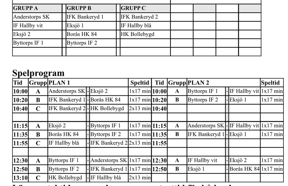 På grund av de skärpta reglerna för allmänna sammankomster så har IFK Bankeryd beslutat om följande för sammandraget på söndag (och kommande aktiviteter så länge reglerna kvarstår): "I hallen kommer vi att släppa in max 99 personer inkl. vilande spelare och ledare. I publik räknas INTE de spelande lagen, domare, matchfunktionärer, och IFK Bankeryds volontärer samt mötande lags chaufförer. Från hemmalaget Bankeryd kan endast 1 förälder/barn närvara när barnet spelar match. När laget vilar ber vi er föräldrar att lämna hallen, så vilande lag kan sitta på läktaren/ vara publik." Det är såklart jättetråkigt att inte alla som vill kan komma och se på matcherna nu när vi äntligen har ett sammandrag på hemmaplan men vi måste följa de regler och restriktioner som finns. Med största sannolikhet kommer det att hållas ett sammandrag i Bankeryd även i vår, vi får hoppas att läget är ett annat då. Jag bifogar schemat för att underlätta eventuell planering. Vi påminner om att tjejerna ska komma ombytta och med fylld vattenflaska samt mellanmål. Om ditt barn inte har fått ett matchställ så hör av dig så ordnar vi det på söndag. /Ledarna för F9 F13 (födda 2012) 3 dec 2021 2kommentarer