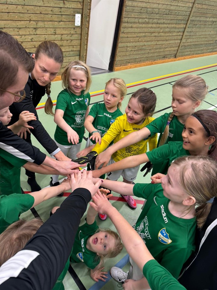 En tidig söndag med siktet inställt på Tjörn och Valla Cup! Vi kickstartade 2026 med inomhuscup. Tjejerna var väldigt taggade när vi möttes på parkeringen tidigare i morse och samlade ihop laget. Vi visste att vi skulle få spela fyra matcher och att alla ville ha mycket speltid var tydligt, vilket såklart är jätteroligt! De två första matcherna mötte vi Myckleby 1 & 2. Det var ett lag som var nya inför matchsituationen vilket gjorde att våra tjejer hade gott om tid på sig för sitt eget spel. Många passningar gjordes, vattenkranen satt och och många mål och olika målgörare! Den tredje matchen var mot Kärra IF och där mötte vi ett helt annat motstånd. Här fick alla jobba hem mycket, lugnet på planen var borta då tempot var högt och många tuffa skott sköts mot vårt mål. Tjejerna kämpade på och vi pratade mycket efteråt om att det lärrorikt att möta olika motstånd. Inför fjärde matchen var tjejerna lite stukade men dem laddade om lagom till start och inledde matchen med full fart och mål!Tjejerna kände snabbt att dem hade kontroll på matchen och hade återigen chans att få spela sitt eget spel med mycket passningar, fint samarbete och grymt hemjobb! Vi ledare reflekterar över tjejernas enorma utveckling! Idag har vi sett riktigt bra passningsspel, samarbete, självförtroende på planen, kommunikationen på planen funkade jättebra, målvakterna är modiga och ger allt och målen rullade in! Hela 27 mål stod IFK Björkö för (inte för att man räknar…) Tjejerna var som vanligt sjyssta, hejar på varandra och visar gott humör även när det är tungt. Ett supergäng som redan pratar om nästa cup och nästa match, underbart att höra! Hoppas alla känner sig nöjda med sina insatser, annars får ni gärna påminna dem! //Ledarna Tack för en rolig söndag!