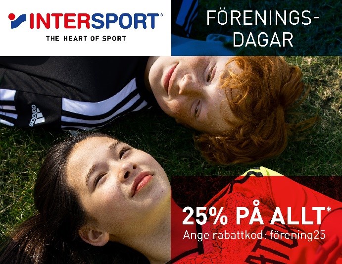 Just nu har vår samarbetspartner Intersport 25% på allt i butik och på intersport.se, ett perfekt läge att köpa det ni behöver för en aktiv höst. Ange rabattkod förening25 på intersport.se eller visa upp mejlet i kassan. När du handlar allt från fotbollsskor och hockeyklubbor till regnkläder, sneakers och sportmode på Intersport får både du och vår föreningen bonus. För du har väl valt vår förening att stötta extra på ”Mina sidor”? Återkom om ni har frågor eller funderingar! *Gäller på ord. priser i butik och online 6/9 till 13/9 kl. 09.45. Gäller ej på presentkort, elektronik, pulsklockor, cyklar, träningsmaskiner, el-scooter, golf, Asics, Hövding hjälmar, Thule, supporterprodukter, beställningsvaror eller föreningskläder. Glöm inte bort att ta en titt i våran Webbshop som snart firar 1 års jubileum!! Snabbguide till Shopen: 1. Klicka på länken 2. Klicka på Logga In uppe i högra hörnet 3. Om du inte redan har ett konto måste du registrera dig (fyll i personnummer, Min butik, Min förening m.m.) 4. Logga in 5. Tryck på Förening och leta upp IFK D/Ö 6. Nu är det bara att handla OBS! Du ser rabatterna först när du går till Kassan. /IFK D/Ö Innebandy i samarbete med Intersport
