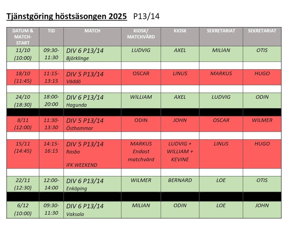 Hagunda IF P13/14 Div6 (hemma) | 24 okt, 18:30 |