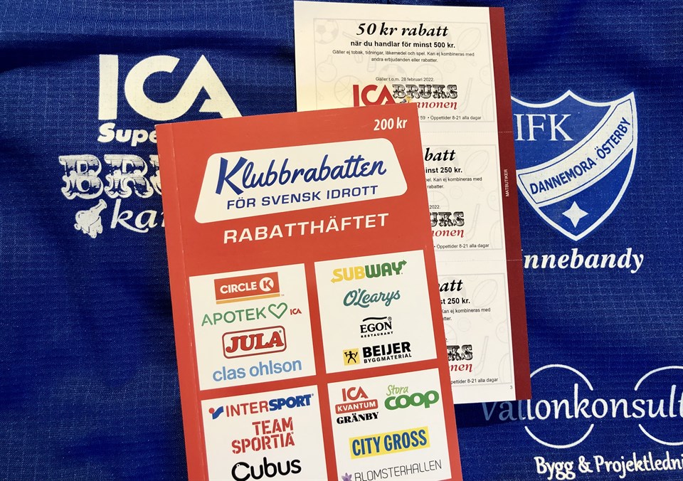 Vi fortsätter att sälja Klubbrabatten även denna säsong för att bidra till finansiering av kommande aktiviteter! Klubbrabatten är ett häfte som innehåller många fina erbjudanden i form av rabattkuponger hos butiker och företag i Uppsala med omnejd. Värdefull inkomstkälla Klubbrabatten är en värdefull inkomstkälla för föreningen, så därför ser vi gärna att ni bidrar även vid denna försäljning. Genom försäljningen vår/sommar fick föreningen in ca 20.000 kronor. Ett stort tack till alla er som bidragit till det! Nödvändiga inköp på smittsäkert sätt Vi uppmanar alla att följa FHM´s restriktioner i samband med inköp så att det genomförs på ett smittsäkert sätt. Klubbrabatten innehåller rabatter på nödvändiga inköp som ändå genomförs, t.ex. mat, apotek, sportutrustning m.m. Generösa rabatter Som vanligt innehåller Klubbrabatten-häftet många generösa rabatter som gör att du snabbt och enkelt tjänar in kostnaden för häftet. Sportutrustning, mat, kläder, träning, bilutrustning & biltvätt, verkstäder, rehab & hälsa och mycket mer! Kupongerna gäller sept 2021 - februari 2022 Extra rabattkuponger (100kr) på ICA Brukskanonen medföljer varje häfte som tidigare. För mer information om alla fina rabatter som finns i Klubbrabatten - klicka här Hur många vill ni ha? Köp häften för eget bruk och sälj så många häften som möjligt vidare till släkt och vänner! - Skriv i kommentarsfältet hur många Klubbrabatten-häften ni vill ha! - Ledare lämnar därefter ut önskat antal Klubbrabatten till spelare under v36, i samband med träning. Tips! Rabattkupongerna från föregående försäljning går ut den 31/8, så passa på nu om du har nån kvar. Missa inte den fina rabatten på Apotek Hjärtat här i Österbybruk. Fyll på hemma-apoteket! Klubbrabatten-häftet kostar 200kr. Swisha 200kr per häfte till Kiosknumret 123 122 77 43, senast 30/9. (100kr per häfte går direkt till IFK D/Ö Innebandy) Skriv ”Klubbrabatten Spelarens för- och efternamn” i meddelandet. Tack på förhand och lycka till! Hälsningar Styrelsen