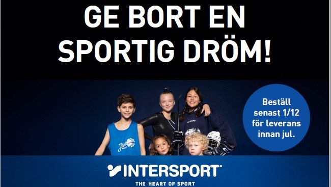 PASSA PÅ ATT KÖPA FÖRENINGSKLÄDER TILL JUL Till idrottande barn, engagerade föräldrar eller mor- och farföräldrar med rötter i klubben. Föreningskläder är en fin julklapp för de flesta. Varje förening har en egen webbshop på intersport.se där du kan gå loss inför jul. STÖTTA ER FÖRENING När du köper dina julklappar på Intersport är du med och stöttar en tennisspelare, fäktare, mittfältare eller cheerleader. Vi ger tillbaka 3% till föreningslivet på allt du handlar. Välj vilken förening du vill stötta lite extra på Mina sidor. Se länk Intersport