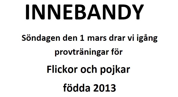 Söndagen den 1 mars kl. 09.30-10.30 kör vi igång provträningar för pojkar/flickor födda 2013. Det blir sammanlagt 4 st tillfällen 1-8-15-22 mars. Är ni intresserade av att hjälpa till som ledare under någon av dessa tillfällen? Kommentera nedan. /Styrelsen