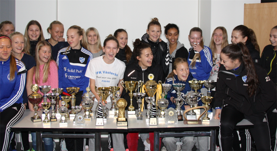 Vilken bra dag det blev! Vår säsongsavslutning/vinter-kickoff började 10.30 i omklädningsrummet med information om dagens träningspass från Eskilstuna Uniteds tränare, Viktor Eriksson som gästade oss. Efter träningen snabb dusch och samling i VIP-rummet där Viktor berättade om Eskilstuna United och Damallsvenskan och Malin Diaz om sin väg från flickspelare till landslagsspelare. Spännande att höra Malins berättelse och sällan har väl våra tjejer varit så tysta… Tack till Viktor & Malin! Efter lite selfiesar med Malin och dessutom bilder på våra pokaler skjutsade vi tjejerna till Kokpunkten. Bra lagaktivitet som sedan avslutades med middag på Jensens. Kanon! Vi passade även på att uppmärksamma våra ”Årets…” Årets träningsnärvaro: Corre Överlägsen, knappt missat ett träningspass… Årets kämpar: Olivia, Leo, Vera, Lollo, Alma, Ida, Emelie, Idil, Vendela Har varit skadade till och från under säsongen men inte vikit ner sig Årets lirare: Linn & Moa Två spelare som gjort en kanonsäsong Årets lagkamrat: Ida Inte den som låter högst men en viktig kugge i laget och en exemplarisk lagkamrat
