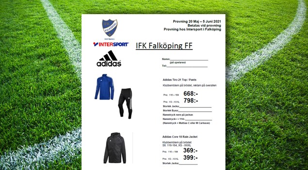 Med början 20:e maj fram till den 5:e juni kör vi en ny prov- och beställningsomgång av IFK:s klubbkollektion på Intersport. All betalning av beställda produkter görs till Intersport vid beställningstillfället. Nytt för 2021 är: • Ny modell på klubboverall som kommer vara under 2021-2022 • Väskor är Svarta i färgen i stället för blåa. (då Adidas inte har kvar den blå färg vi haft längre) Klicka på länken för att se vad som finns att beställa: Kollektion maj-juni
