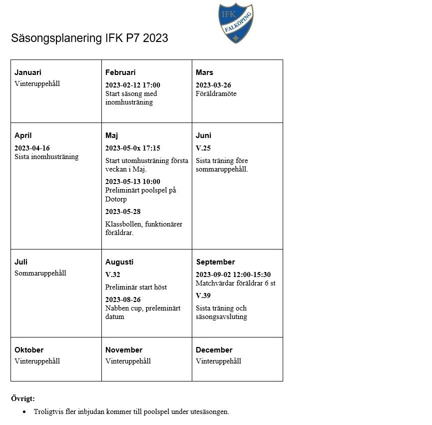 Som vi nämnde på dagens föräldrarmöte kommer här vår översiktliga säsongsplanering. Lagförälder och ny ledare Elin (Elias Stenberg) är nu lagförälder och Valton (Noar Gashi) hjälper nu till som ledare. /Ledarna