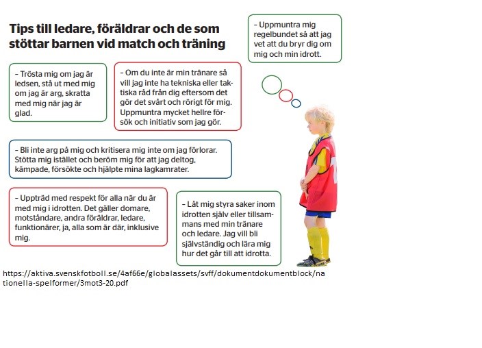 På lördag är det dags för första matchen för våra 6-åringar. Att dra på sig det blåa stället är förhoppningsvis den första av många gånger och som ska förknippas med glädje, kamratskap och egen utveckling - både som individ och fotbollsspelare. Ledarna vill därför, vilket vi tror är självklart för er föräldrar, uppmana alla att tänka kring bifogad bild och agera därefter.