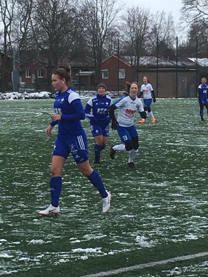 Vi har hittills under försäsongen spelat 6 träningsmatcher mot blandat motstånd. Här kommer lite info om dessa matcher. I första matchen spelade vi mot division 2 kollegan Borens IK. I denna matchen spelade vi med två olika startelvor, så att alla skulle få speltid. Matchen slutade 2-1 till oss efter mål av Lisa & Ebba R. I andra matchen mötte vi en till seriekollega men denna gång stod Lysvik för motståndet. Även i denna matchen luftades många spelare. Matchen slutade 2-2 där Lisa blev tvåmålsskytt. I den tredje matchen stod ÖSK Söder för motståndet. Söder som numera spelar i division 1 blev en svår nöt att knäcka, även om vi hade flertalet klara målchanser så slutade matchen med en 2-1 förlust. Målskytt blev nyförvärvet Tilde. I vår fjärde match stod ytterligare en seriekollega för motståndet och den här gången var det Rynninge som vi skulle matchas mot. Det blev många mål och slutresultatet blev till slut 6-1. Målskyttar blev Stina 2, Sofia 2, KB & Lisa. Den femte matchen blev det lite tuffare, då vi tog emot nykomlingarna i division 1, Hertzöga. Det blev en tight match som till slut slutar med en 1-0 förlust. Den sjätte matchen var vår första tävlingsmatch för i år. Myresjöhus Cup. Vi mötte Sturehov där vi enkelt vann med 4-2 efter att dom satt sina två bonusstraffar i början på matchen. Målskyttar blev Evelina, Jenny, Matilda L och ett självmål. Nästa match spelas den 31/3 kl 10:00 då vi igen tar emot Ösk Söder hemma på Allévallen. Varmt välkomna och titta då gott folk.