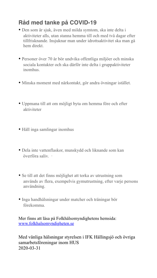 I Dessa tider tänk på detta! IFK Hällingsjö 31 mar 2020 0kommentarer