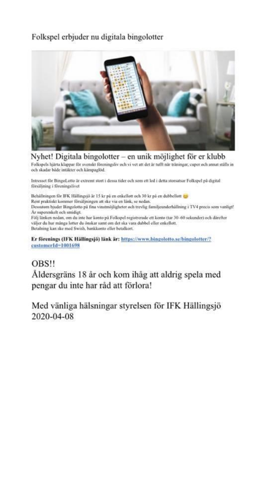 Köp bingolotter genom Hällingsjö IFK Hällingsjö 23 apr 2020 0kommentarer