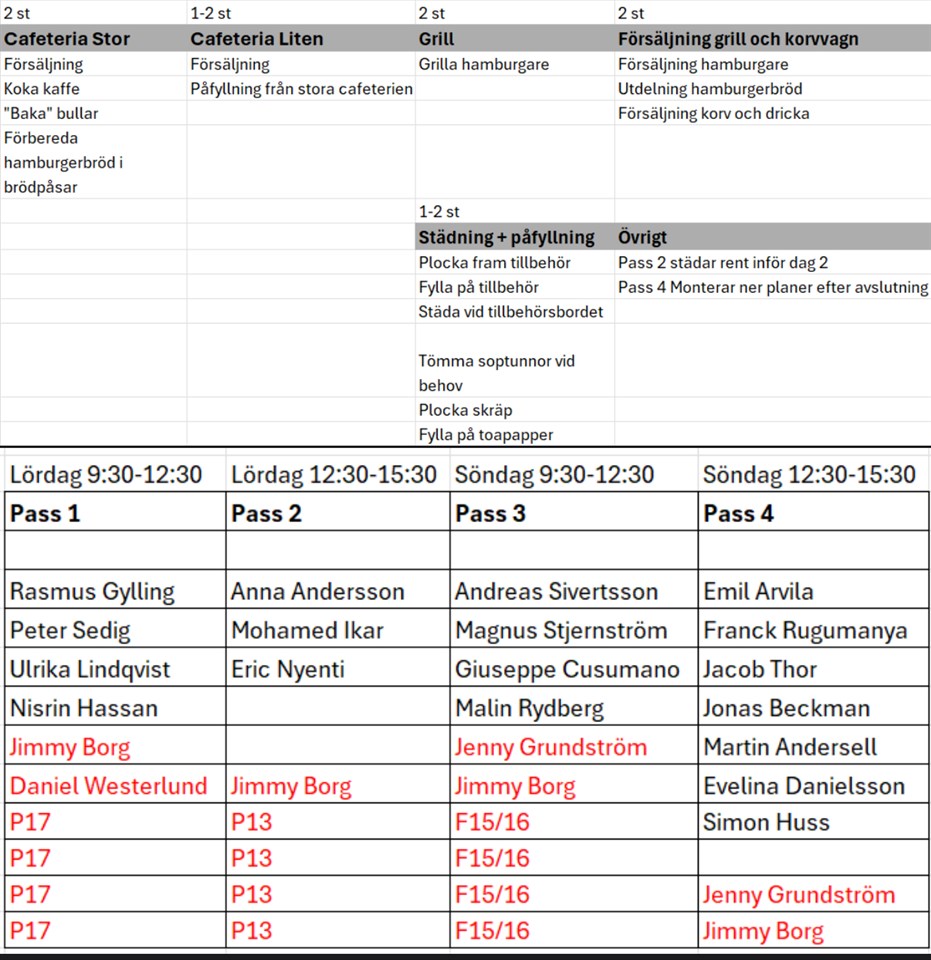 För de föräldrar som har kiosken så är samling för er 9:30 på IP (pass1 lördag) se bifogat schema.