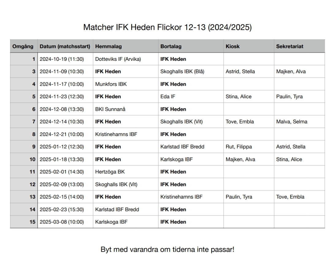 Fyll i din e-postadress för gratis uppdateringar om IFK Heden F 12/13