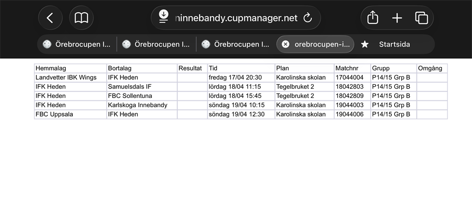 | Karlskoga IBF (hemma) | 19 apr, 10:15 |