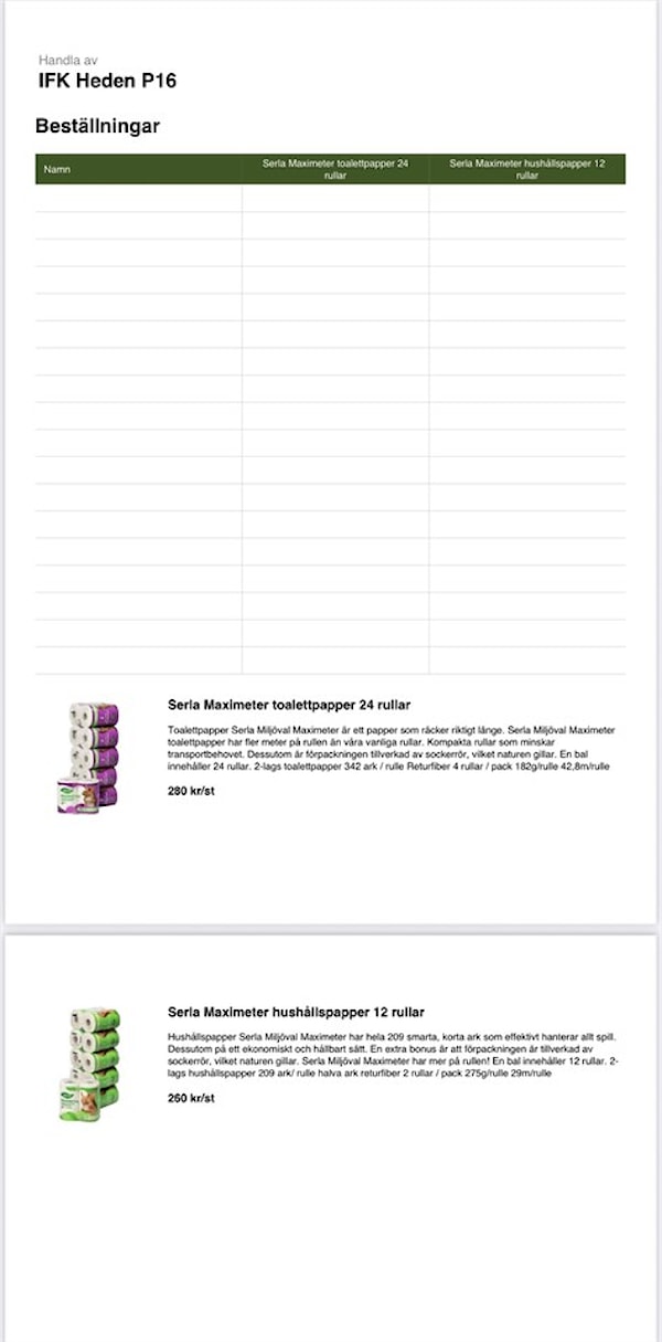 För att stärka vår lagkassa kommer vi att genomföra en försäljning av toalett- och hushållspapper från Miljökassen. Detta är en enkel och uppskattad försäljningsform där alla kan bidra, samtidigt som vi säljer produkter som de flesta hushåll ändå behöver.