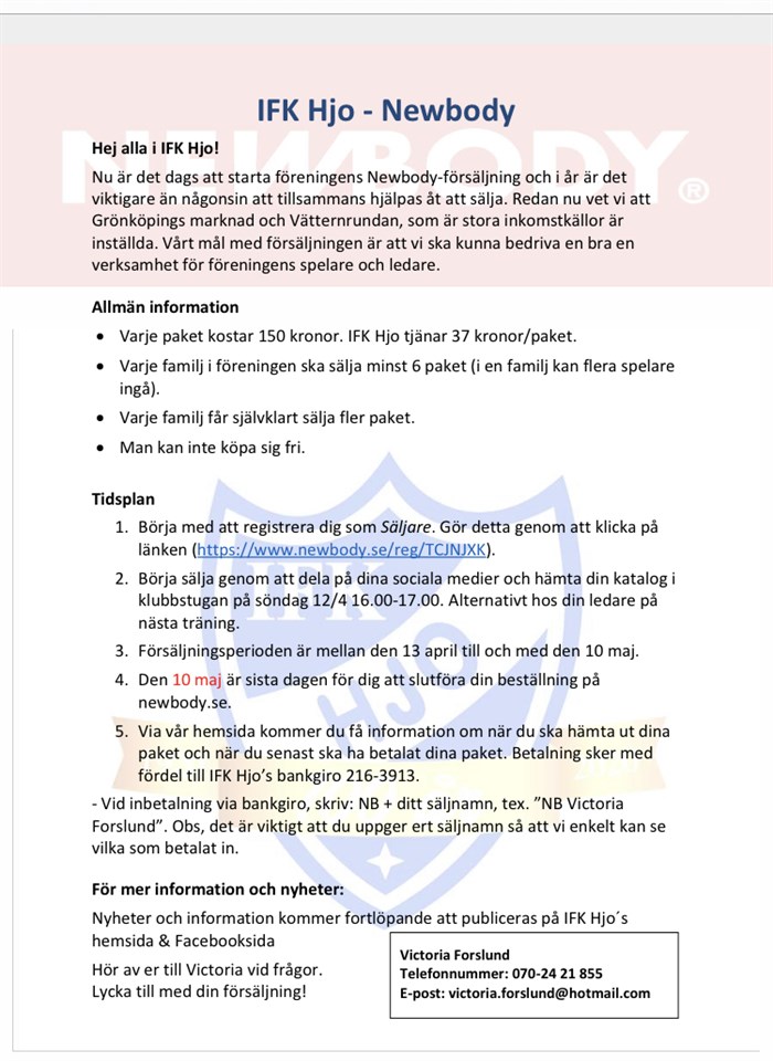 Nytt för i år är att tjejerna kommer få börja hjälpa till att dra in pengar till föreningen genom försäljning. Säsongen börjar med försäljning av newbody. I filen kan ni läsa mer om det! Mvh Tränarna Damjuniorer 13 apr 2020 0kommentarer