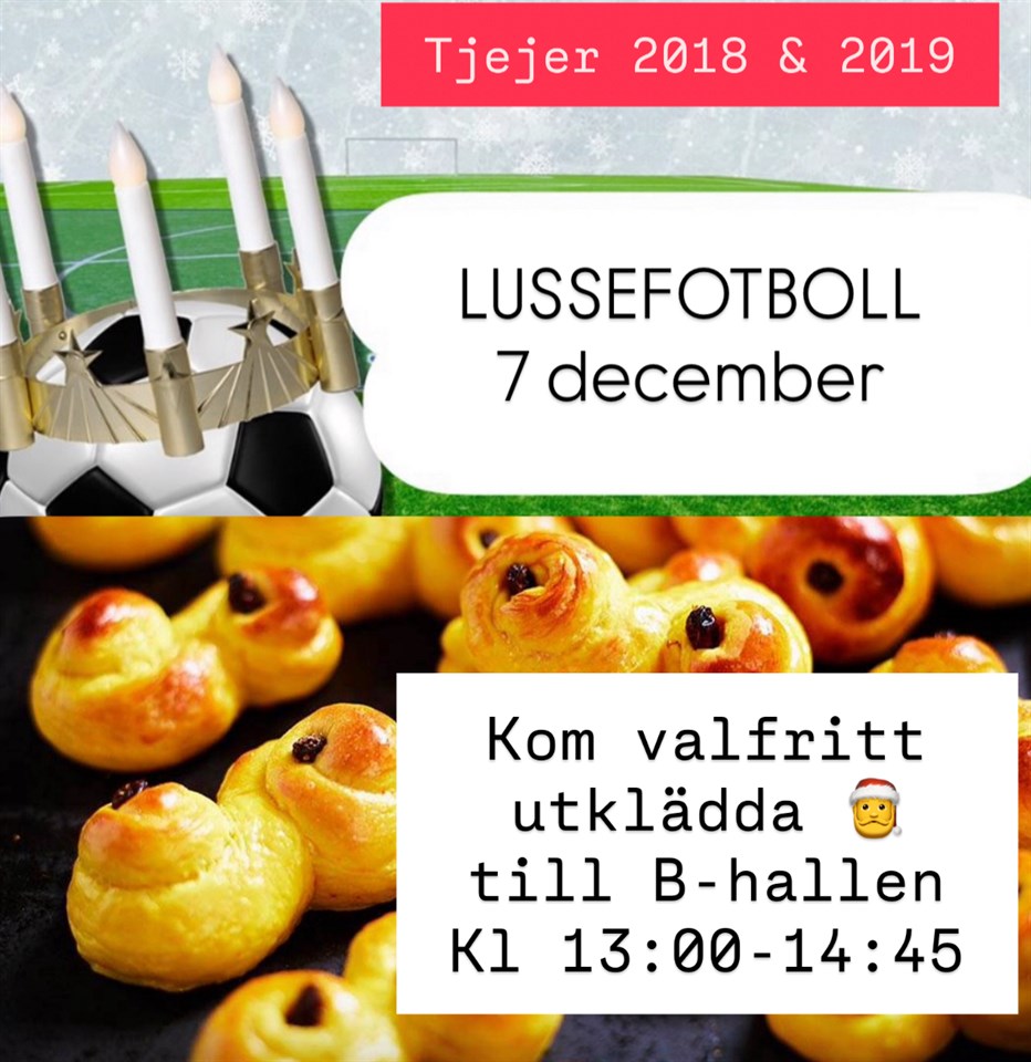 Lite ändring av Lussefotbollen. Vi kommer köra samma dag den 7 december men vi ändrar tiden till 13:00-14:45 och platsen till B-hallen i Guldkrokshallen. Anledningen är att 2019-tjejerna har handbollsavalutning på förmiddagen vilket krockade.
