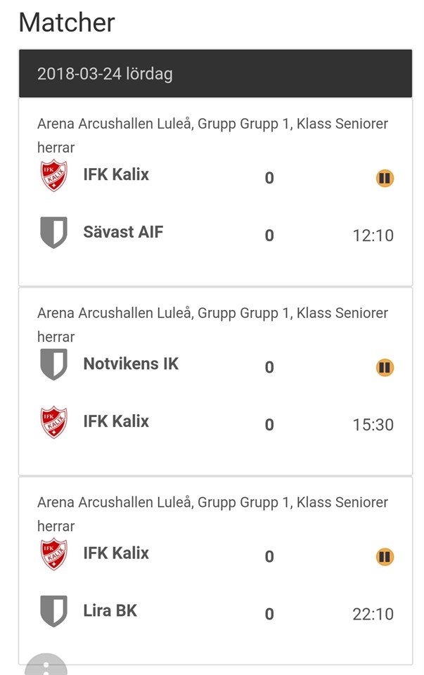Här är kiosk passen under våra hemma matcher för hela säsongen 2018 vi gör ett valfritt bakverk ( var och en ) som vi säljer under hemma matchen samt kokar kaffe/te 2 st personer som tar kiosken vid varje hemma match se nedan och som vanligt kan vi inte ta tilldelat arbetspass i kiosken så ordnar ni själva med en ersättare får inte bara utebli från erat arbets pass Juniorlagets hemma matcher 2018 Kiosken / Baka Söndag 29/4-18 Kl: 14:00 Malmbergets AIF (hemma) Rasmus Grahn / Mikael Andersson Söndag 6/5-18 Kl : 15:00 Överkalix IF (hemma) Kevin Baudin / Adam Noren Söndag 13/5-18 Kl: 16:15 Kiruna FF 2 (hemma) Arvid Juntti / Daniel Nilsson Söndag 27/5-18 Kl: 16:00 GSK/GMFF (hemma) Simon Hjortlöv / Alexander Lindqvist Onsdag 27/6-18 Kl: 19:30 Polcirkeln/Svanstein FF (hemma) Sebastian Wiklund / Jonathan Osberg Resin Tisdag 28/8-18 kl: 19:30 Haparanda FF (hemma) David Öhman / Nattaphon Kaenchan Söndag 16/9-18 Kl: 16:00 Överkalix IF (hemma) Anton Juntti / Isak Wiklund Lördag 22/9-18 Kl: 16:15 Pajala/OAFF 2 (hemma) Erik Qvist / Nils Ö Juniorlag Herrar 17 apr 2018 0kommentarer