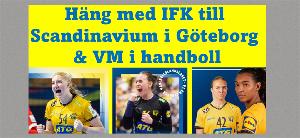 Ni har väl inte missat att vi har släppt biljetterna till våra två VM-resor? Klicka på bilder här på er lagsida, där finns mer info från tidigare utskick. Resa 1: Den 3/12 är det första gruppspelet som gäller. Inte de allra bästa lagen (förutom Sverige), 9men en dräglig hemkomsttid (kl 23:30). Söndag 3/12 är det självklara valet för de yngsta barnen. Resa 2: Måndag 11/12 kommer vi hem sent (kl 02.30), men får se de sista och absolut avgörande matcher om de fyra semifinalplatserna, sannolikt inför ett kokande Scandinavium. Det självklara valet för handbollsälskaren - här spelas de direkt avgörande matcherna om slutspelsplatserna, mellan sex lag från grupp A & B som alla tillhör den absoluta världstoppen. Avresa med buss från Stenstalidshallen kl 10.00 båda datumen, med lunchstopp i Alingsås HK´s hemmaarena Estrad, där AHK´s sportchef berättar om elitföreningen Alingsås HK. - Anmälan till: pelle@hoijs.se - Kostnad: 850kr/person (buss, lunch och matchbiljetter) - Betalning sker till IFK Handbolls plusgiro efter bekräftelse om att ni har fått plats på resan. Plusgiro: 290580-0 - Barn & ungdomar födda 2009 och yngre ska anmälas tillsammans med vuxen Platserna är begränsade, först till kvarn! Hälsningar IFK Handboll