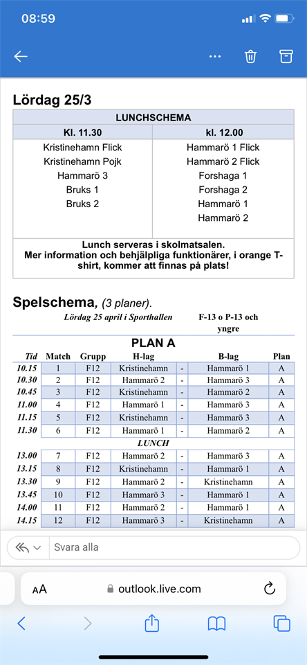 Hej alla föräldrar! Vi tänker oss samling 08.35 på lördag då cupen drar igång i Forshaga vid 10.15. Jag vet att några av er lagt märke till att spelschemat ser lite tokigt ut, ni har helt rätt. Vi har kontaktat Forshaga gällande detta och de håller på att rätta till det. Vi ses på lördag med glada miner och redo för cup. Med vänlig hälsning, Ledarna F12 (födda-13) 23 mar 2023 0kommentarer