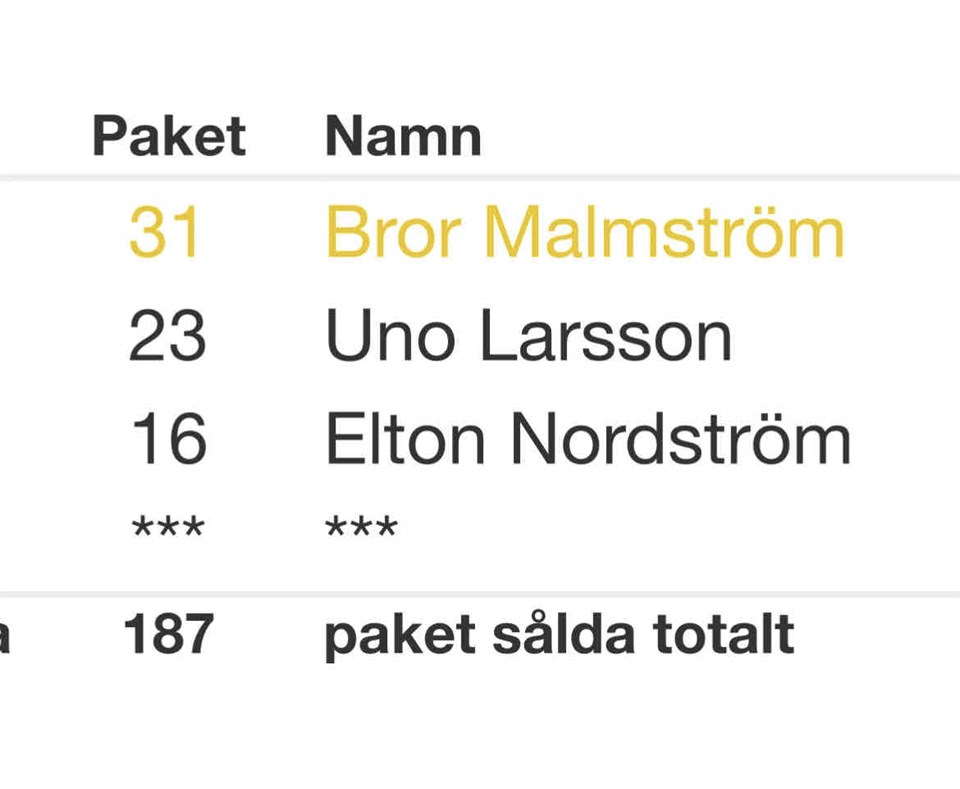 Grymt jobbat allihopa Vi kom på andra plats av alla lag i IFK Kalix och får därför 4 extra paket till laget:) En liten extra applåd denna gång ger vi till dom på prispallen🏆 Vi har tillsammans sålt över 200 paket nu efter att några har skickat in sin beställning i efterhand. Så detta blir förmodligen ett netto på ca 6000 kr till lagkassan. Återkommer med exakta siffror när betalningen kommit in från Ravelli🙌 Vi har nu en förvånansvärt bra lagkassa från att ha startat på 0. Återkommer med totalen efter att dressarnas netto är klart. Ingen träning ikväll pga skolavslutningar . Sista träningen för sommaren blir på tisdag nästa vecka. Säsongsavslutning blir av av när sommarsäsongen är slut:) P-13/14 15 jun 2023 0kommentarer