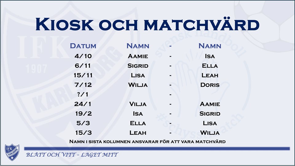 Schema för kiosk och matchvärdar 2025-2026 Dokumentet ligger också under menyn "Dokument". F14 5 okt 0kommentarer