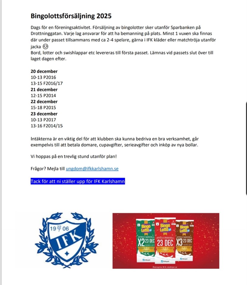 Klicka på bekräftelselänken i det mejl vi skickat dig för att börja ta emot uppdateringar från IFK Karlshamn P-2016.